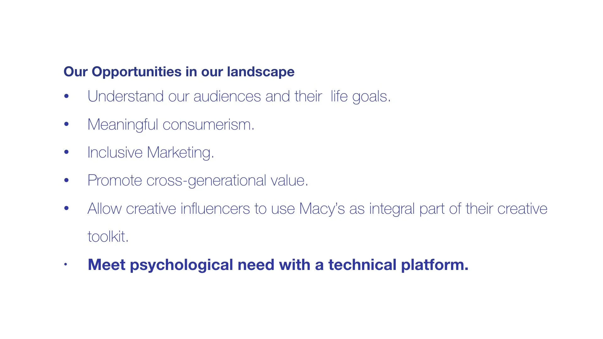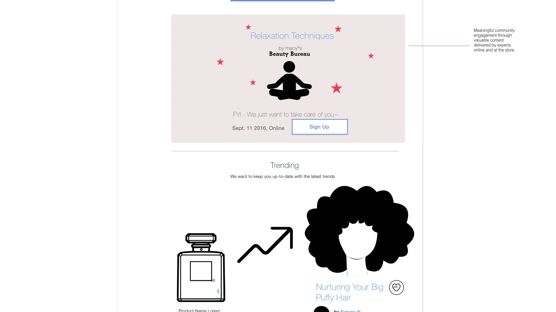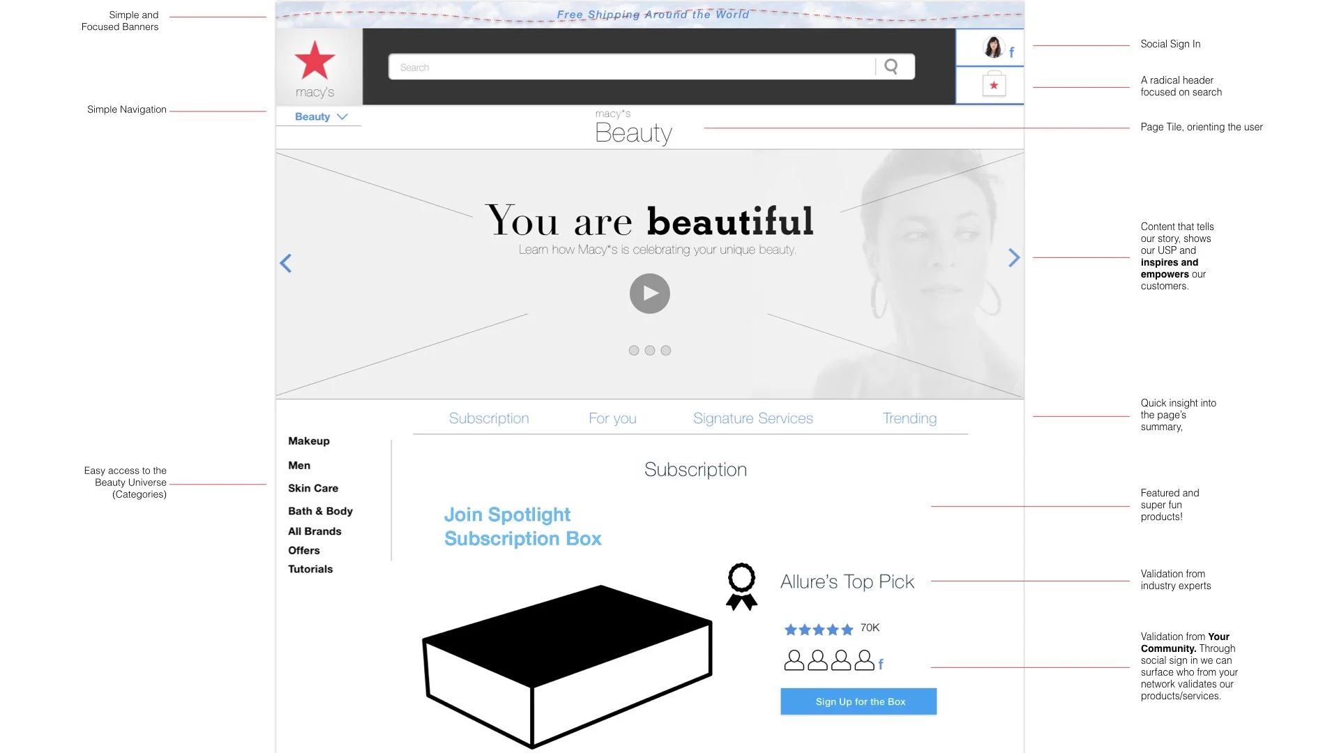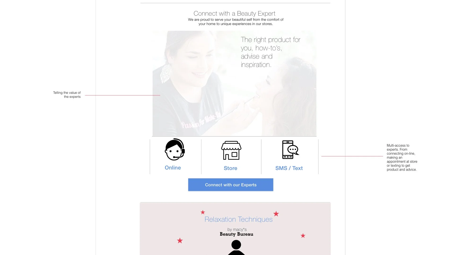 For two years, Macy’s requested the development and evangelization of a strategy that will inform and inspire their repositioning as ‘the’ Beauty destination. This strategy builds on maximizing the engagement with the current audiences through an optimized and exciting 360 experience that also nurtures the needs of the younger generation to shop at Macy's while inspiring internal teams to help own, evolve and execute this vision across the organization