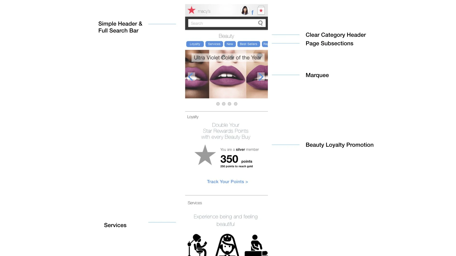 Impact reflected on enhancements of the current beauty homepage and main navigation